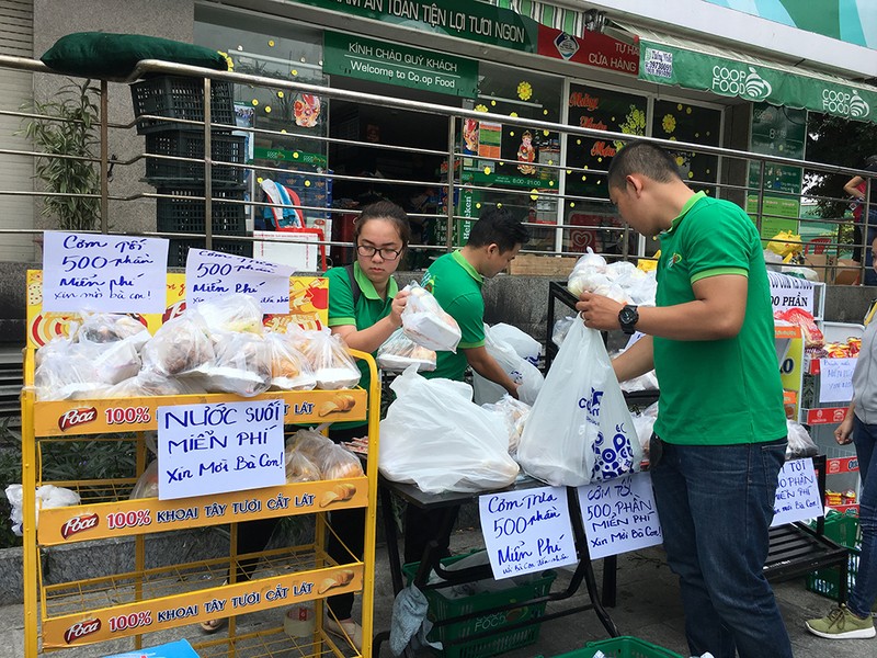 Một đơn vị ngay trong trưa 23-3 đã huy động nhân viên phát cơm nước miễn phí cho người dân.